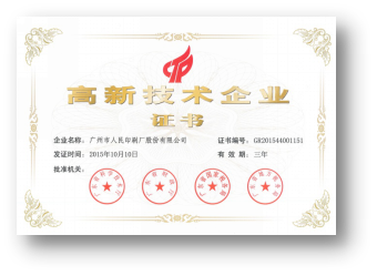 近年来,人印股份着力围绕“安全防伪”打造品牌核心价值,在设计防伪、材料防伪、印刷防伪以及信息防伪领域与中国印刷科学技术研究所、华南理工大学等科研院校建立了战略合作伙伴关系,共建安全防伪研发基地,被认定为广东省智能防伪验证工程技术研究中心、广州市级企业技术中心、广州市科技小巨人企业,目前已拥有30多项自有知识产权和发明专利。